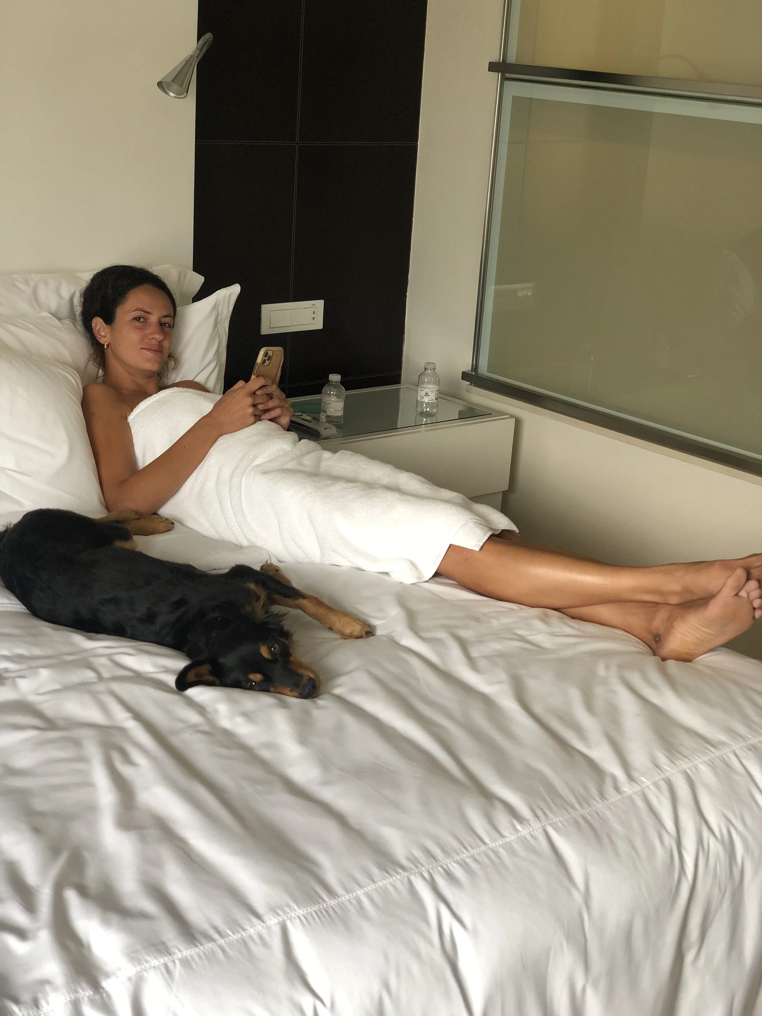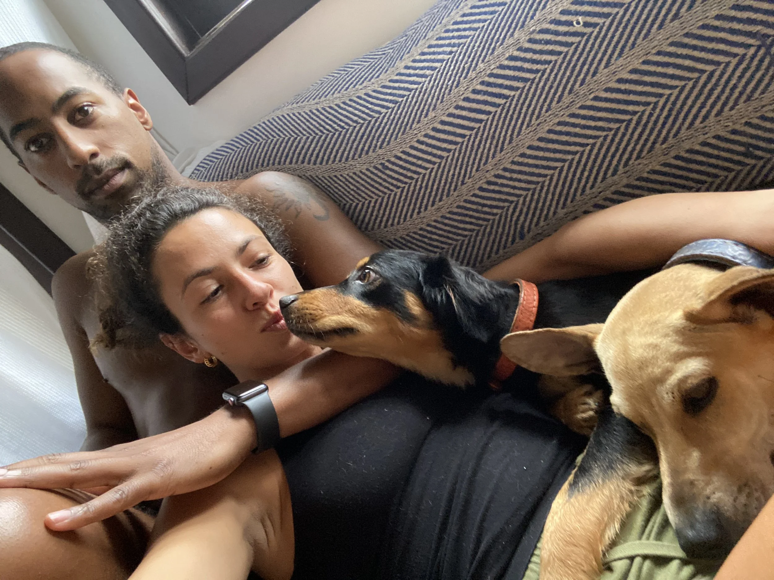 After a few months of living in Brazil, we returned to Los Angeles with the street dog in tow. Shortly thereafter, Ana came up with a great idea: Jarin could take care of Gina - just while she was at work! “Just while she was at work” quickly turned into “every day” and “take care of Gina'' quickly turned into “take care of Gina and Ana.” Ana finally moved in and our little family was born.
